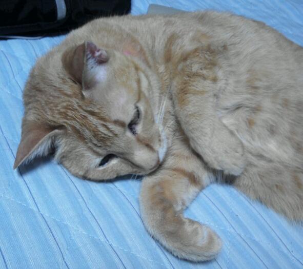 家族の中では自分に一番懐いたらしく、自分の部屋のベッドでゴロゴロ。